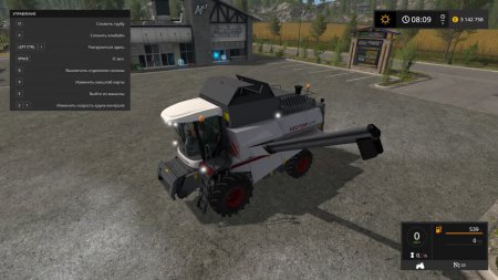 Мощность комбайна 520 л.с., макс. скорость 30 км/ч, объем бункера составляет 6000 литров, жаток в комплекте нет, подойдут стандартные которые есть в магазине. Он оснащен IC системой, при переключении вида на кабину, нажмите пробел, появятся специальные точки, нажав на которые, Вы сможете открывать обе двери. В кабине также работает электронный спидометр и зеркала. Сделана анимация вентилятора для отсоса пыли из бункера со сбором. Имеет собственный звук двигателя и полностью рабочее освещение с маячками на крыше.