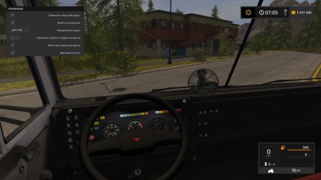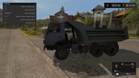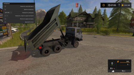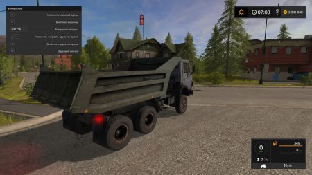 Мощность двигателя 240 л.с., макс. скорость 70 км/ч, объем кузова 10500 литров, для разгрузки нажмите Ctrl+I. Внешне Камаз выглядит очень стареньким и потрепанным временем, имеет реалистичный звук двигателя, взятый с реальной модели. Внутри кабины сделана хорошая детализация, на приборной панели горят кнопочки, работает спидометр и зеркала. Красиво работает вся светотехника.