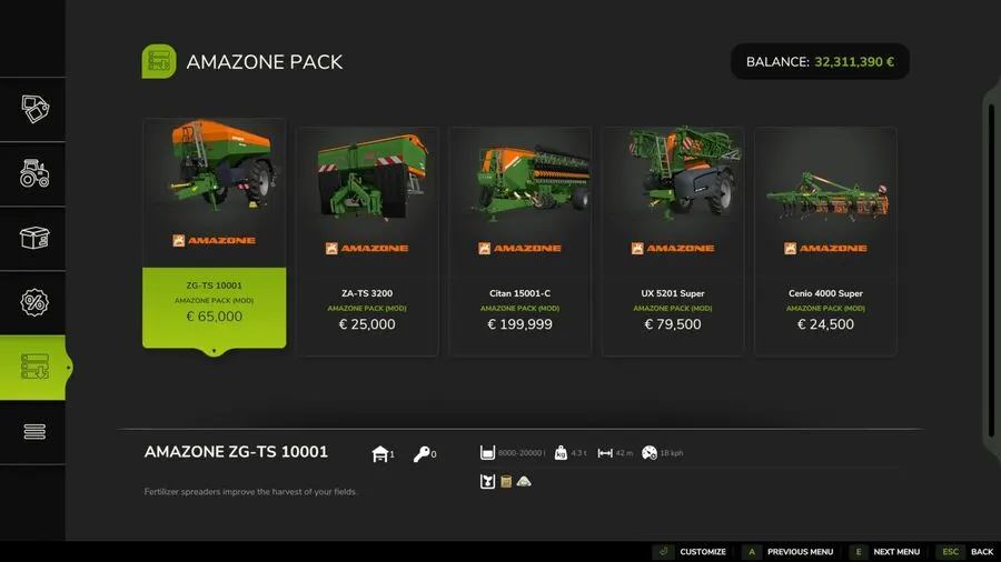 КомплектAmazone Mod Pack V1.0.0.0