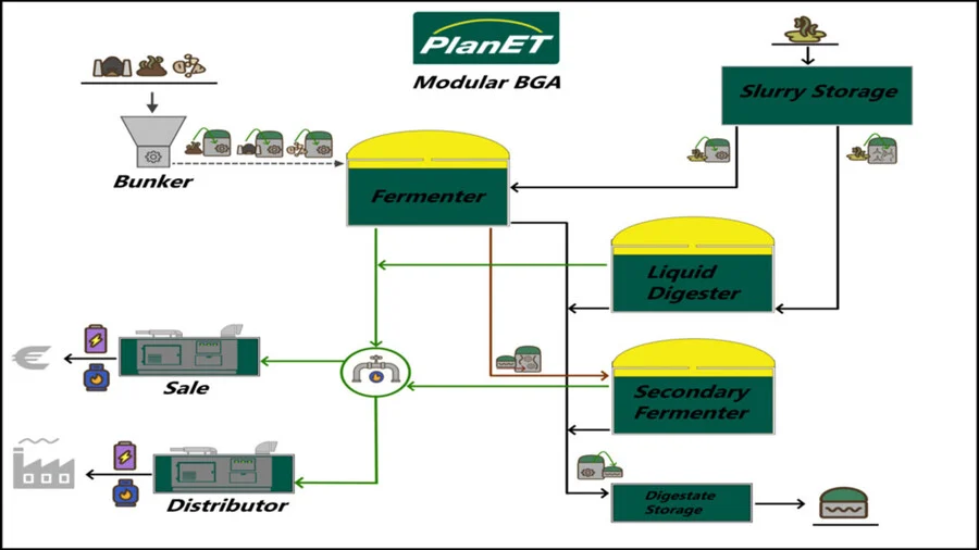 Единственным ограничением является ваше собственное воображение относительно того, насколько эффективно установка производит электричество, метан и дигестат из всех видов биомассы.