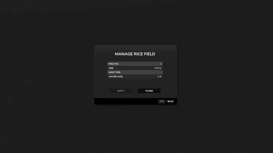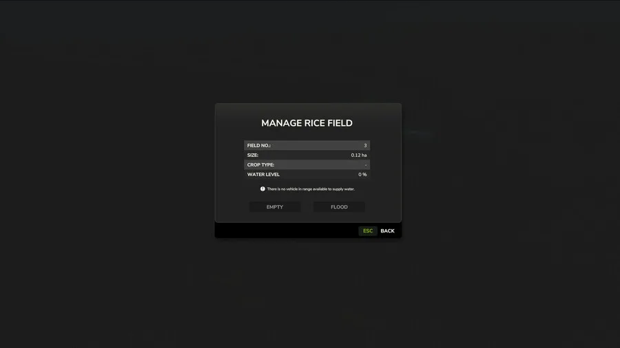 Расход воды зависит от размера поля. Возможно, вам придется дозаправить резервуар, чтобы полностью затопить поле.