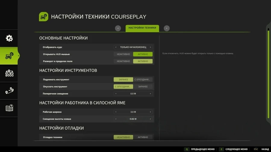 Мод для улучшения автоматизации полевых работ. Узнайте как управлять техникой с автоматической разгрузкой, работать с виноградниками и тюками, а также использовать мультиинструментальные курсы.