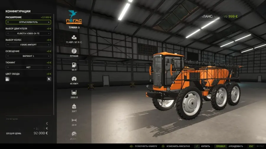 - Конфигурация опрыскивателя / разбрасывателя удобрений;